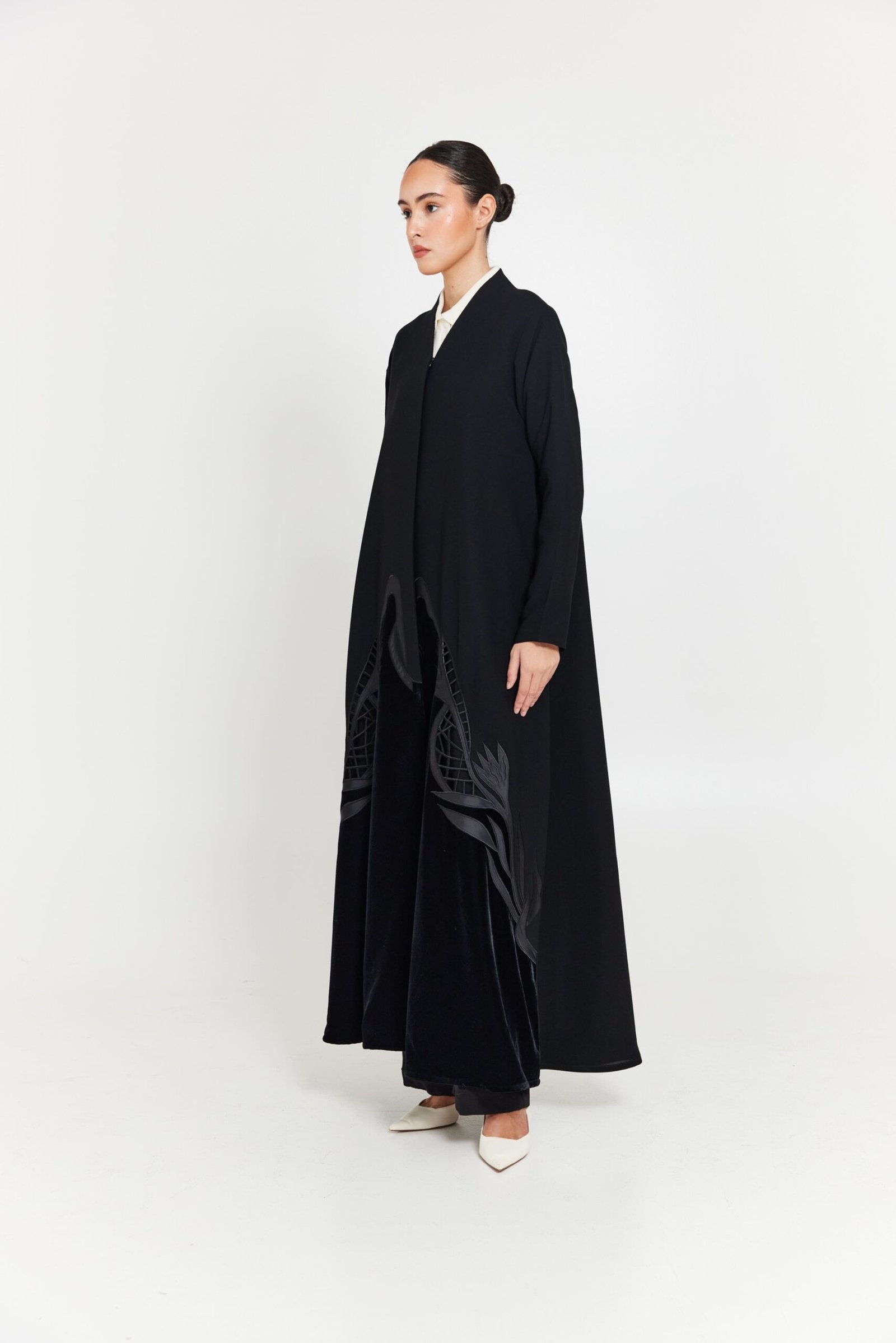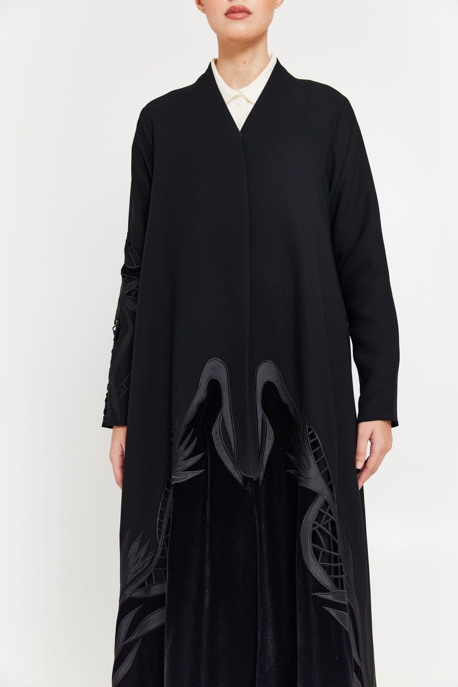 Crafted from premium Korean crepe with a Korean velvet finish at the bottom.